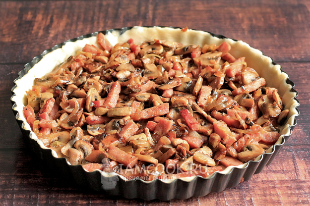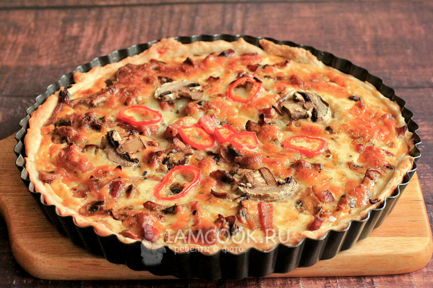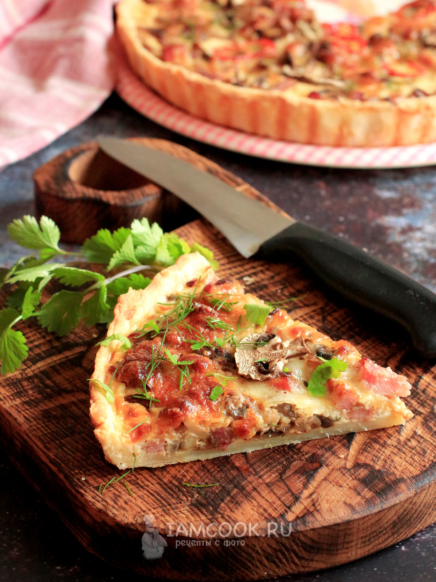 Киш с ветчиной и шампиньонами готов. Немного остудите его в форме, а затем извлеките. Приятного!