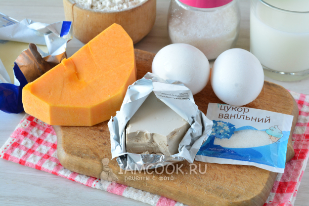Возьмите ингредиенты для приготовления пирожков с тыквой в духовке из дрожжевого теста.
