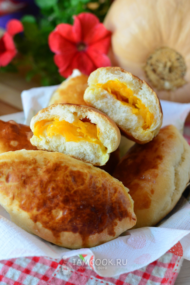 Выпекайте пирожки из дрожжевого теста с тыквой в духовке, заранее разогретой до 180°С, в течение 25-30 минут.