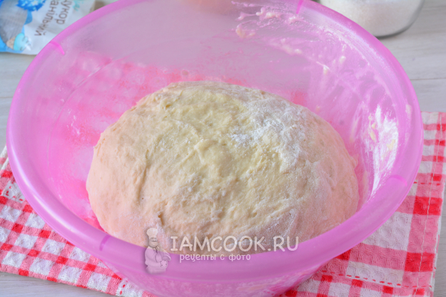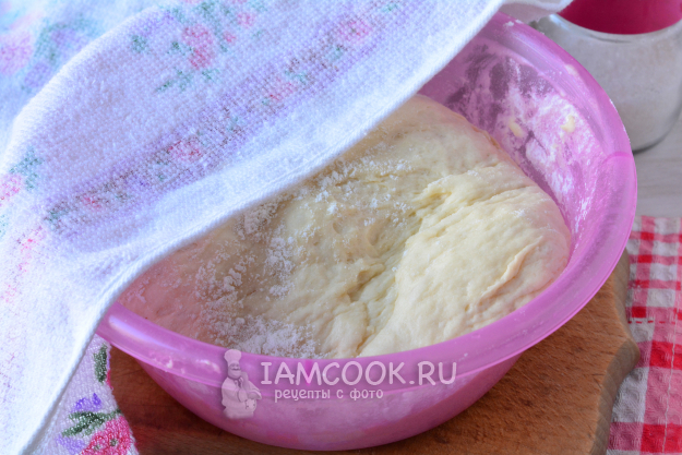Замесите мягкое тесто и оставьте его в сторонке отдыхать на 35-40 минут, прикрыв чистым сухим полотенцем.