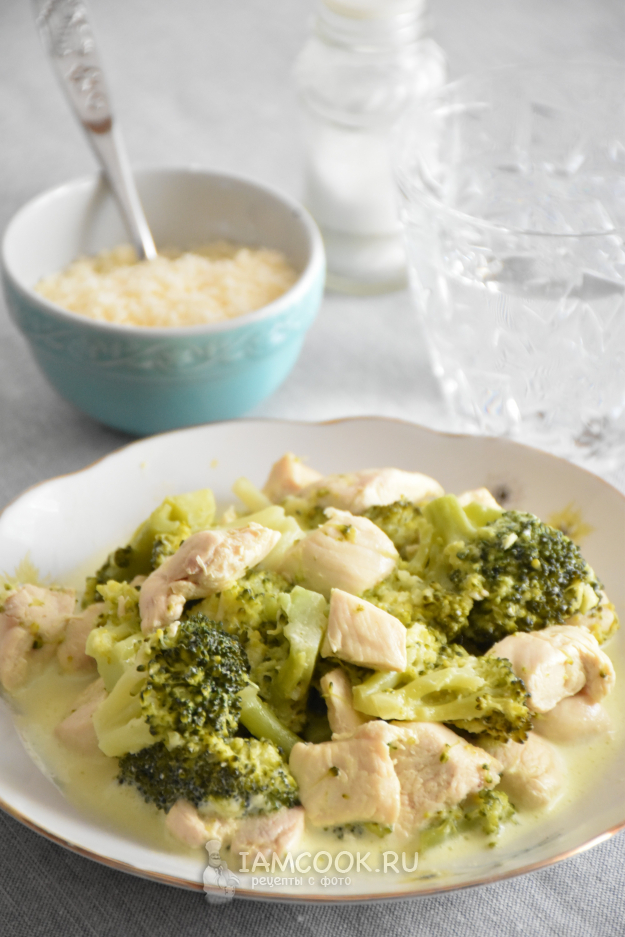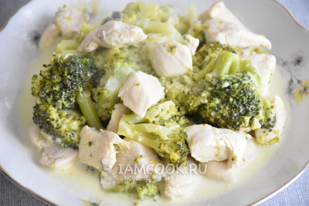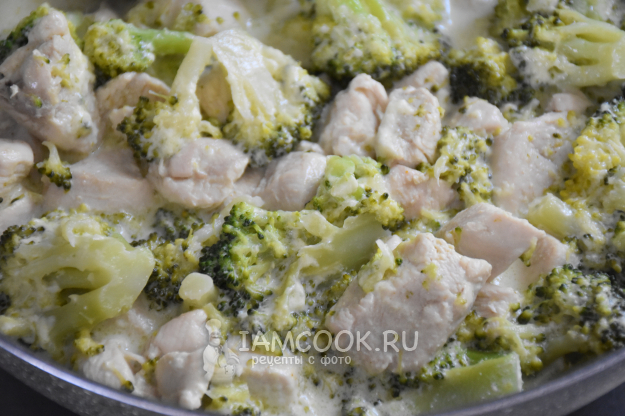Курица с брокколи в сливочном соусе готова. Приятного аппетита!