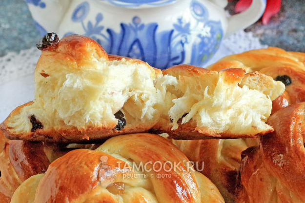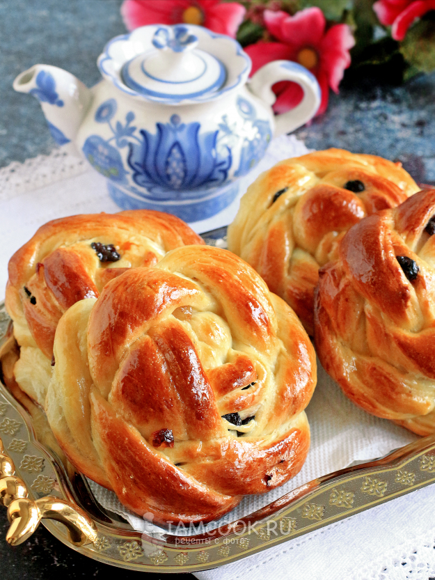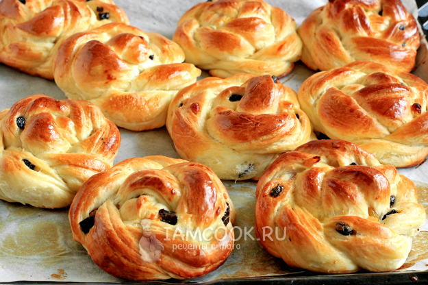 Ароматные дрожжевые плюшки с изюмом готовы. Какие же они вкусные, мягкие и слегка слоеные...