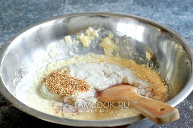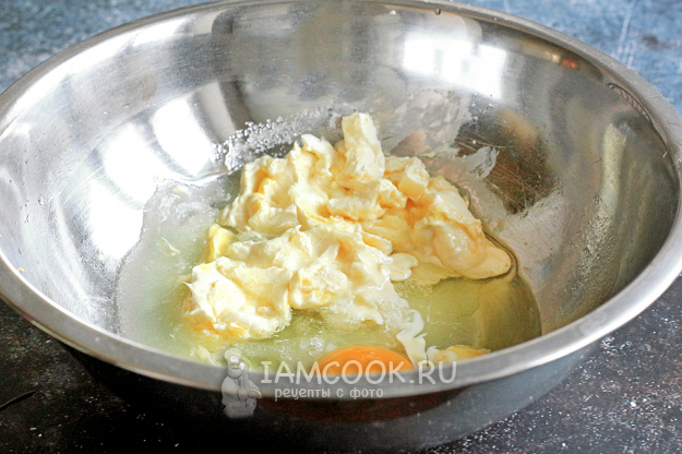 В миске соедините мягкое масло, сахар и яйцо с белком. Добавьте соль.