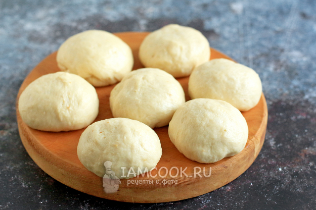 Когда тесто подойдет, разделите его на 10 равных частей. Сформируйте шарики, подкатайте их и оставьте еще на 10 минут под пленкой.