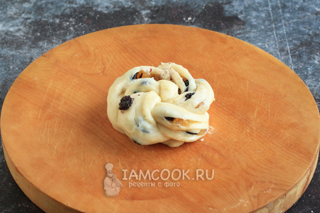 Сверните косичку улиткой, чтобы получилась круглая булочка, концы спрячьте вниз. Сформируйте таким образом все заготовки.