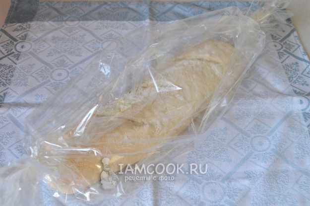 Аккуратно вложить заготовку в рукав для запекания, закрепить концы и оставить для расстойки на 30-50 минут.
