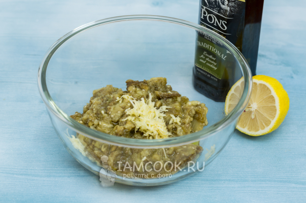 Добавьте масло, натертый на мелкой терке чеснок и сок лимона.