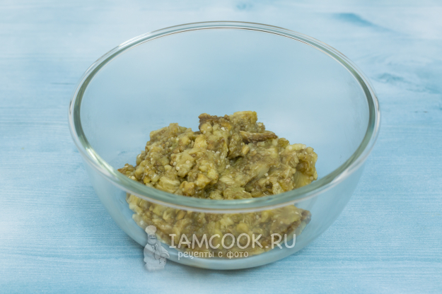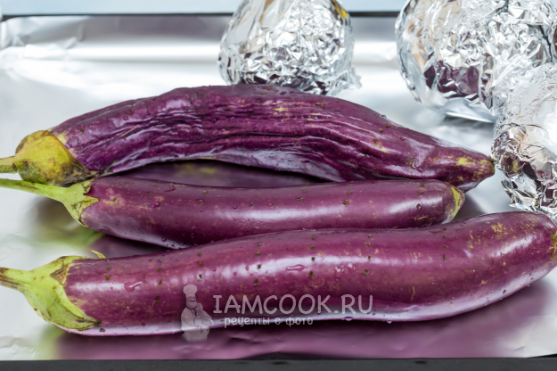 Как только баклажаны станут мягкими, выньте противень из духовки, баклажаны немного остудите.