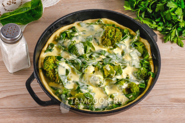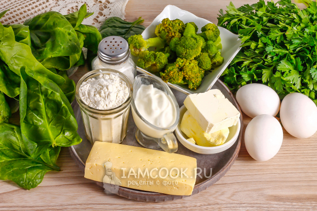 Подготовьте необходимые ингредиенты для создания сытного и аппетитного киша с брокколи и шпинатом.
