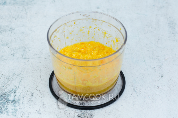 Апельсин, что был у меня, весил 320 граммов и он был очень сочный, поэтому, чтобы начинка не была слишком жидкой, я его перемолола в блендере, затем откинула на дуршлаг, чтобы стек лишний сок, и лишь потом добавила крахмал и сахар. Воспользуйтесь этим советом в случае очень сочного фрукта.