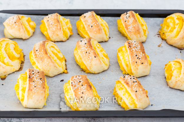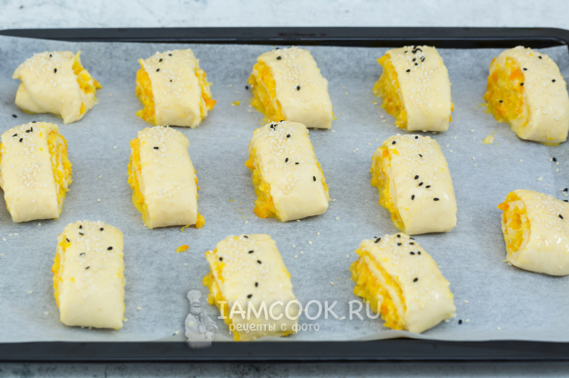 Заготовки выложите на противень, застеленный пергаментом.