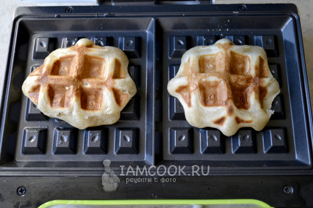 Выпекайте веганские венские вафли в вафельнице примерно 6-8 минут до румяной корочки.
