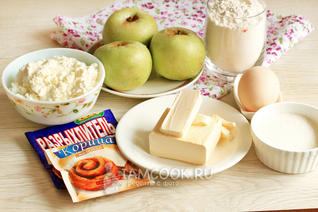 Для приготовления творожного рулета с яблоками в духовке отмерьте необходимые продукты заранее.
