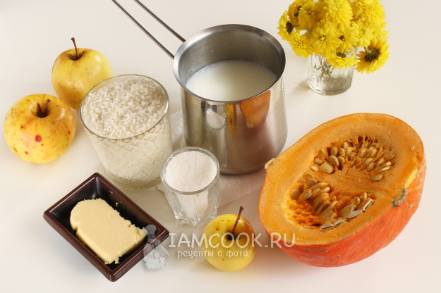 Рисовая каша с тыквой и яблоком — вкусный, сытный, надолго дарящий энергию завтрак. Для приготовления блюда возьмите продукты по списку. Если предпочитаете кашу менее густую, количество молока увеличьте по своему желанию.