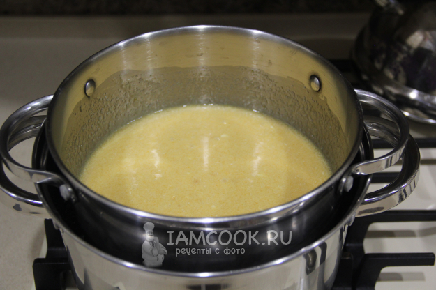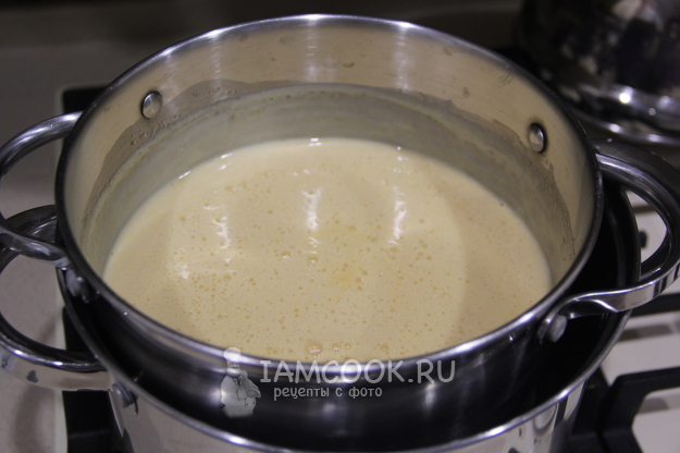 Поставить кастрюлю с медовой массой на водяную баню. Массу перемешивать не надо.