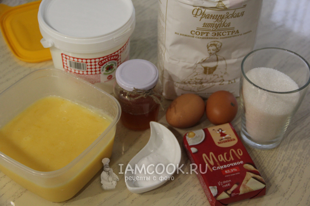 Подготовить продукты для Медовика с лимонным курдом. Начнём с курда. Масло предварительно размягчить при комнатной температуре.