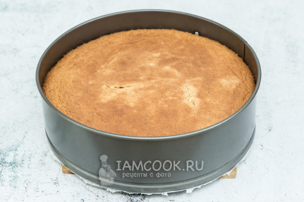 Мой бисквит спустя 8-10 минут сильно зарумянился, поэтому я прикрыла его фольгой и в таком виде допекала до полной готовности.