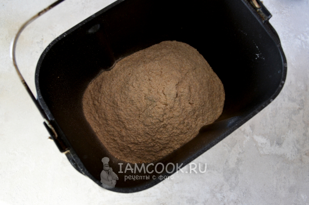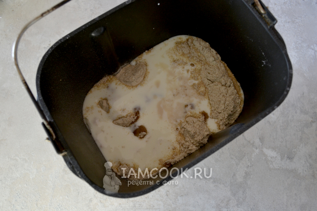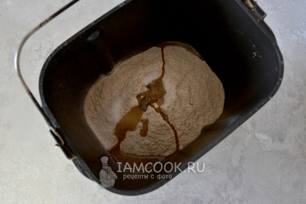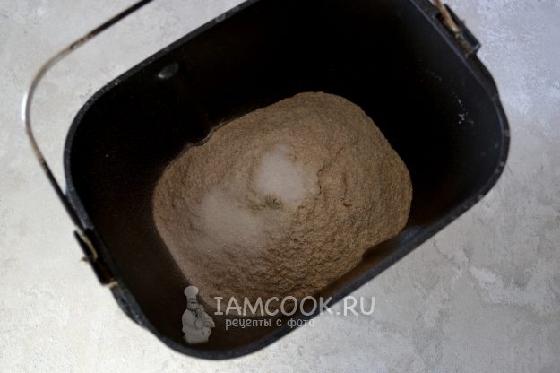 Всыпьте в ведерко хлебопечки цельнозерновую муку.