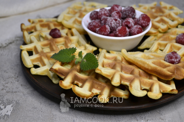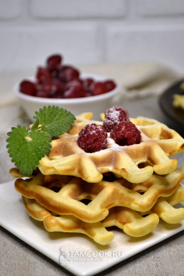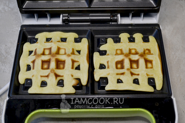 Выпекайте вафли до легкого золотистого цвета примерно 5-6 минут. Время выпечки, конечно, зависит от мощности прибора.