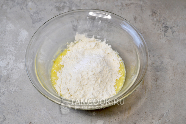 Еще раз венчиком хорошо перемешайте муку с жидкой основой, чтобы получилось однородное жидкое тесто без комочков.