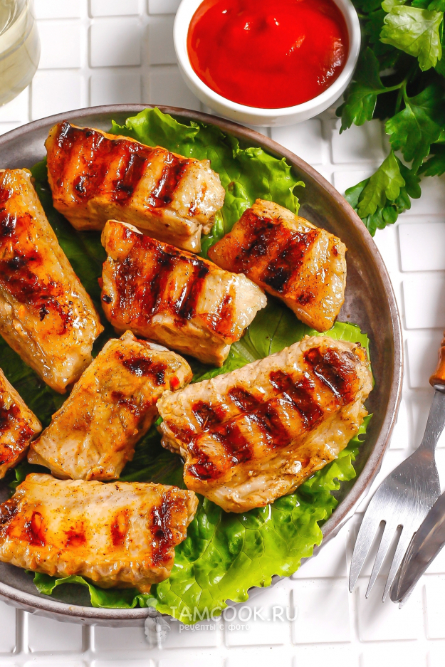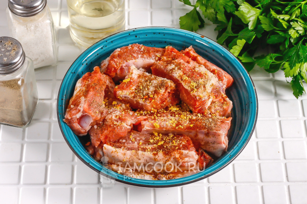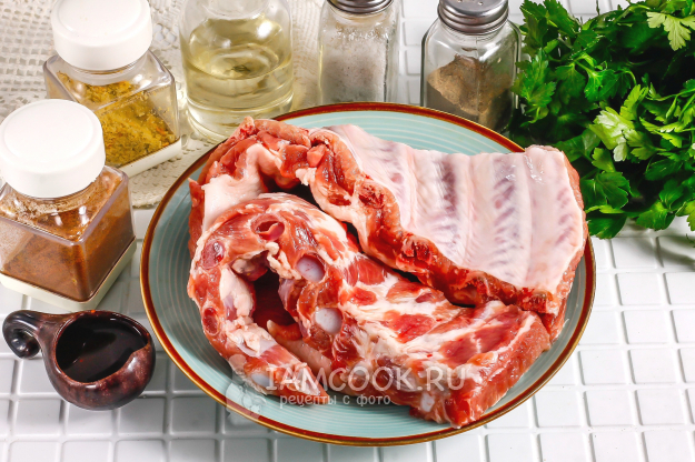 Возьмите необходимые ингредиенты для приготовления ароматных свиных ребрышек на электрогриле.