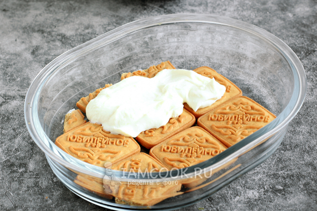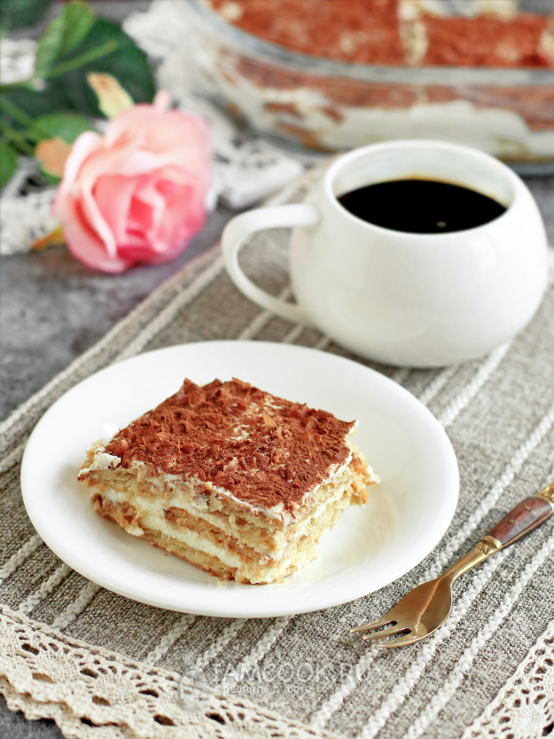 Теперь тирамису из печенья «Юбилейное» и творога готов. Можно нарезать и угощаться.