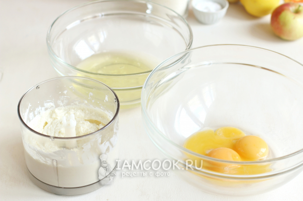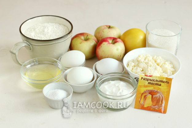 Берем все необходимое для шарлотки с творогом и сметаной и приступаем.