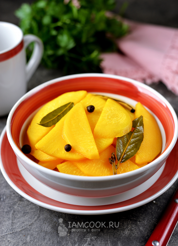 Выложите редьку в маринад и оставьте так до полного остывания. Затем перенесите закуску в холодильник и оставьте на сутки. При желании редьку вместе с остывшим маринадом можно перелить в банку и закрыть ее крышкой.