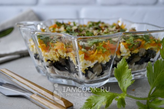 Салат «Блаженство» готов. Дайте салату настояться пару часов в холодильнике и подавайте к столу.