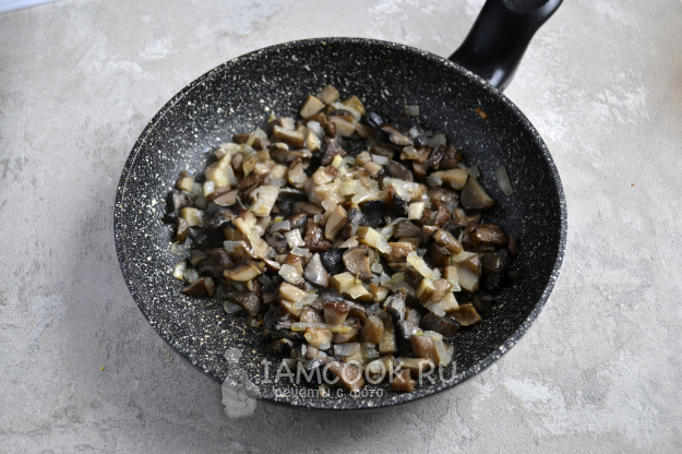 Обжаривайте грибы и лук 8-10 минут на среднем огне.