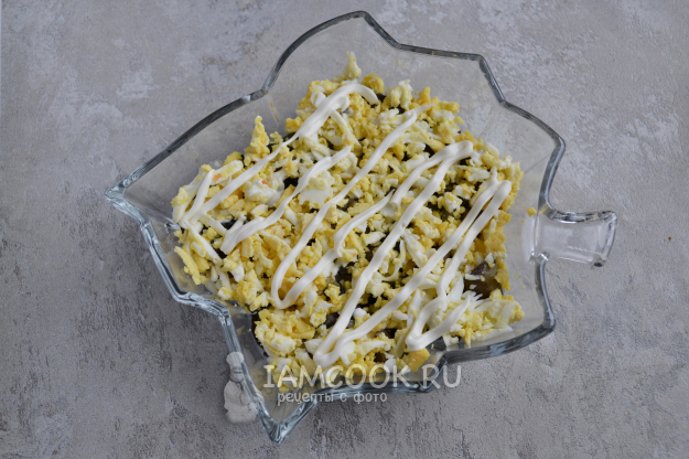 Четвертый слой - натертые яйца и майонез.