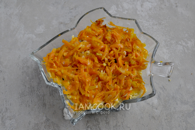 Пятый слой - остывшая обжаренная морковь с луком.