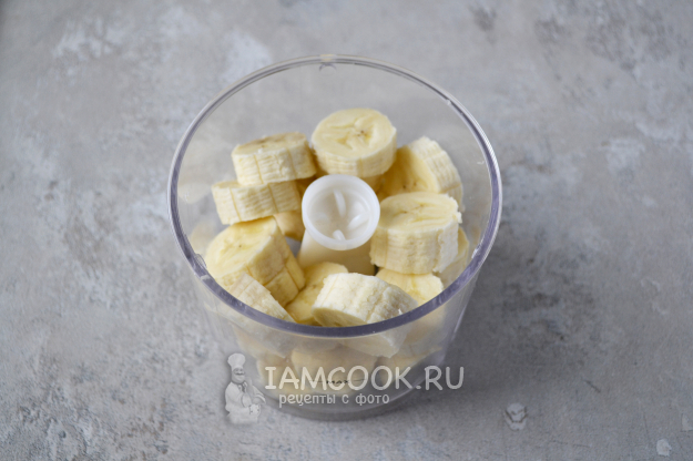 Бананы очистите, нарежьте на кусочки и сложите в чашу блендера.