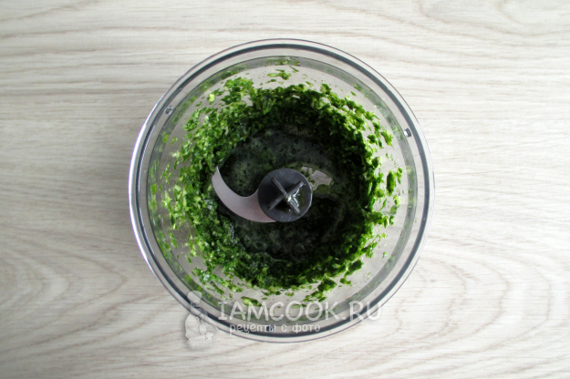 Традиционно ингредиенты для киндзмари растирают в ступке, но в современной кулинарии пользуются блендером.
