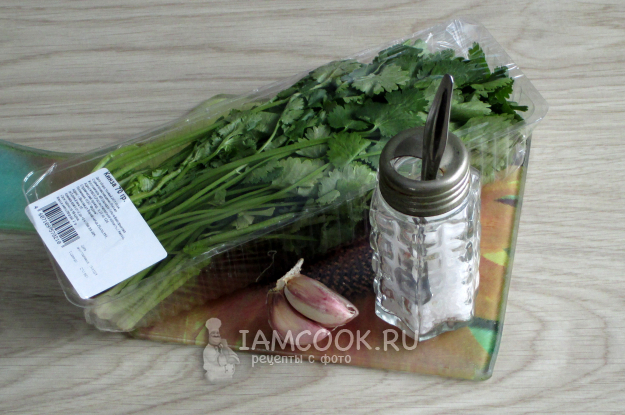 Для грузинского соуса «Киндзмари» подготовьте ингредиенты по списку к рецепту.