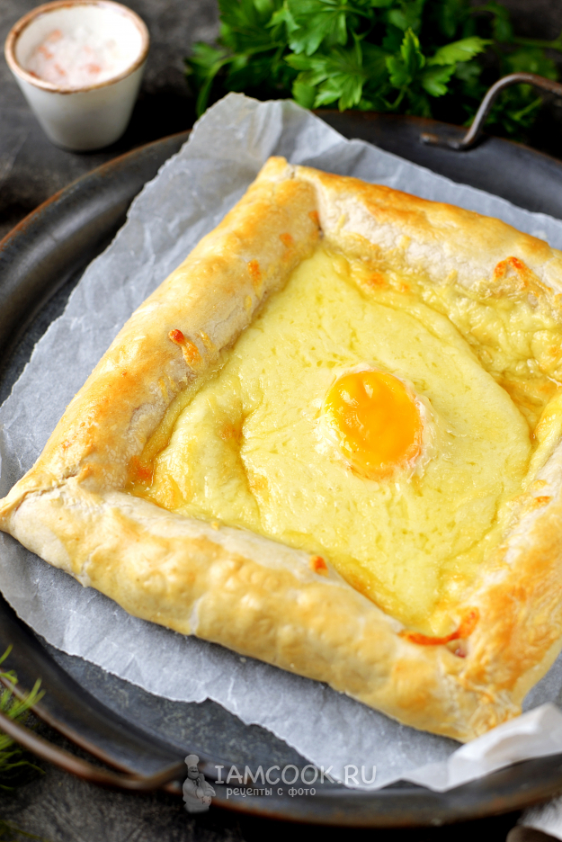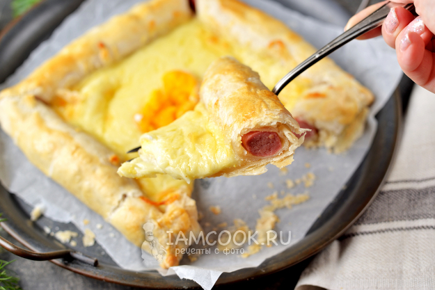 Румяное, ароматное хачапури с сосисками и яйцом готово!