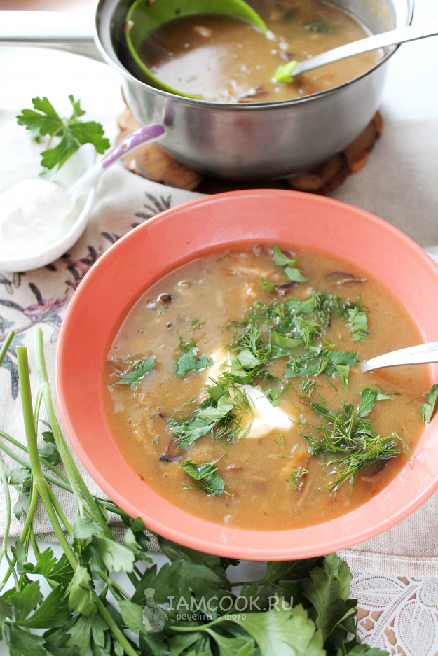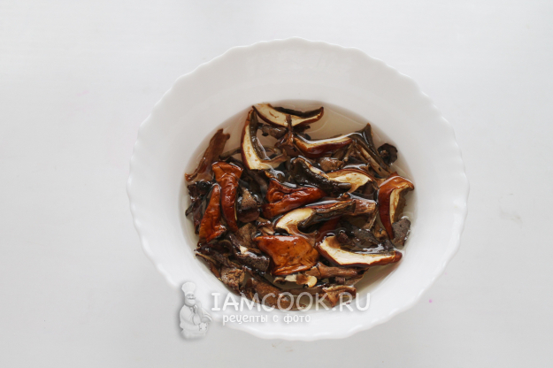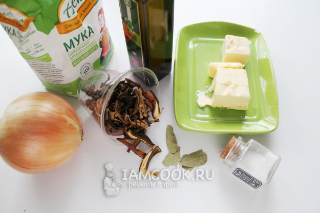 Возьмем продукты для приготовления супа Полевка из сушеных грибов.