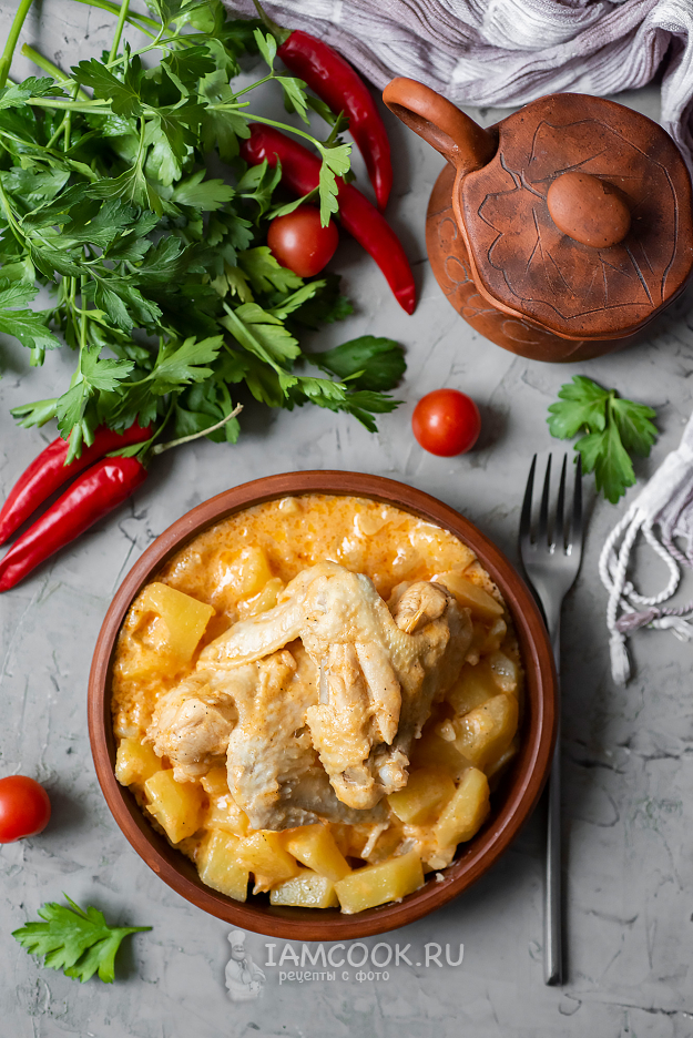 Готовый картофель с куриными крыльями выложим на порционные тарелки и подадим к столу. Приятного аппетита!