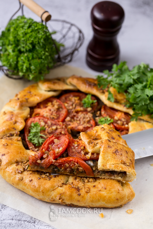 Выпекайте галету с баклажанами в разогретой до 190 градусов духовке 30-40 минут.