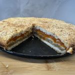 Укройте тестом ореховую начинку и уложите на неё слой начинки из кураги, тоже отступив от края.
