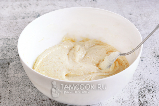 Перемешайте тесто до гладкости и дайте ему постоять в покое минут 10, чтобы манка набухла.