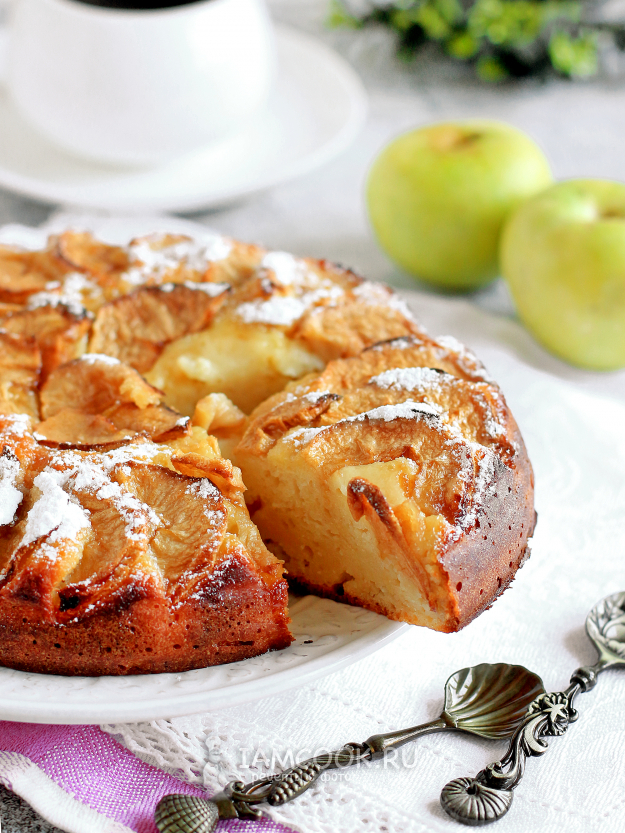 Манник с творогом и яблоками готов. Пока он горячий, смажьте его поверхность сиропом или вареньем, посыпьте сахарной пудрой и дайте хорошенько остыть.