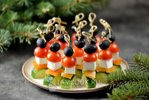 Очень симпатичные и любимые всеми канапе «Греческое» готовы к подаче на праздничный стол.