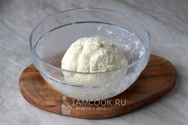 Соберем его в комок и оправим на 15-20 минут в холодильник, предварительно замотав в пищевую плёнку. После "отдыха" тесто станет более пластичным и податливым. Если у вас ограничено время на приготовление данного блюда, можете пропустить этот пункт и сразу приступить к формированию вареников.