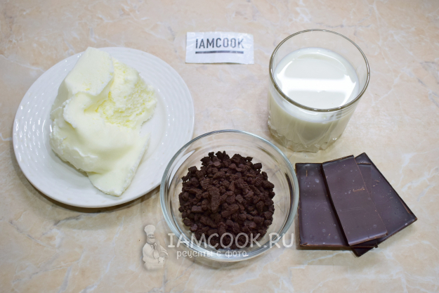 Для приготовления молочного коктейля с шоколадом необходимо подготовить все ингредиенты. Шоколад может быть как темный, так и молочный. Молоко берите любой жирности. Шоколадное печенье поломайте в крошку.