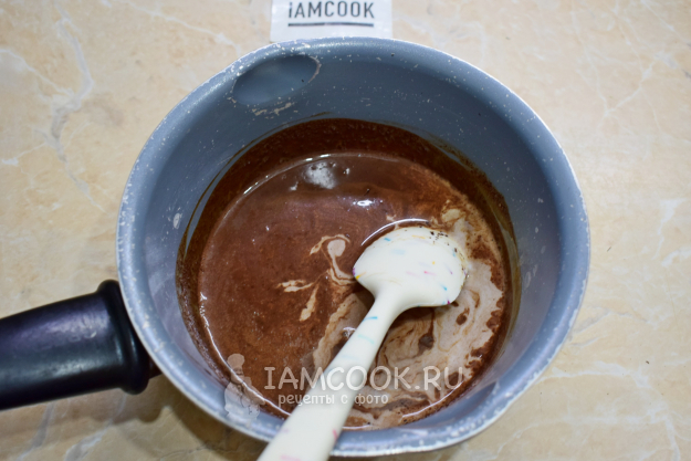 Когда шоколадная масса станет однородной, влейте еще немного молока, чтобы шоколад уже не был таким горячим.