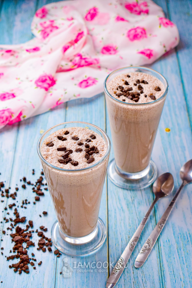 Готовый молочный коктейль с шоколадом разлейте в стаканы и угощайтесь.