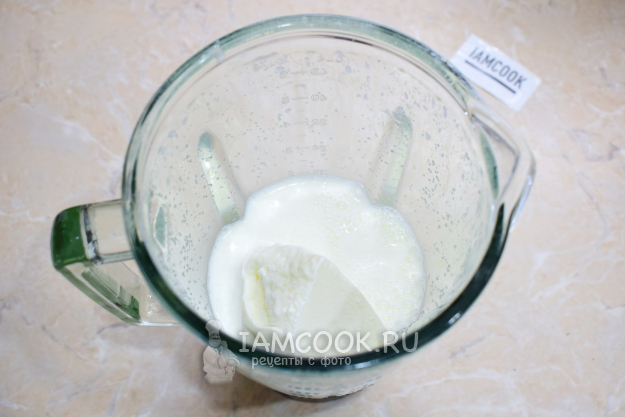 В стационарный блендер выложите мороженое и влейте оставшееся молоко.