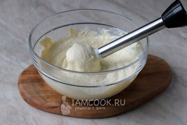 С помощью погружного блендера взобьем массу до однородного состояния.