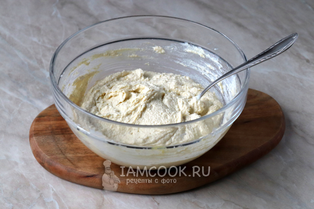 По консистенции тесто должно получиться достаточно густым и вязким (как на фото).